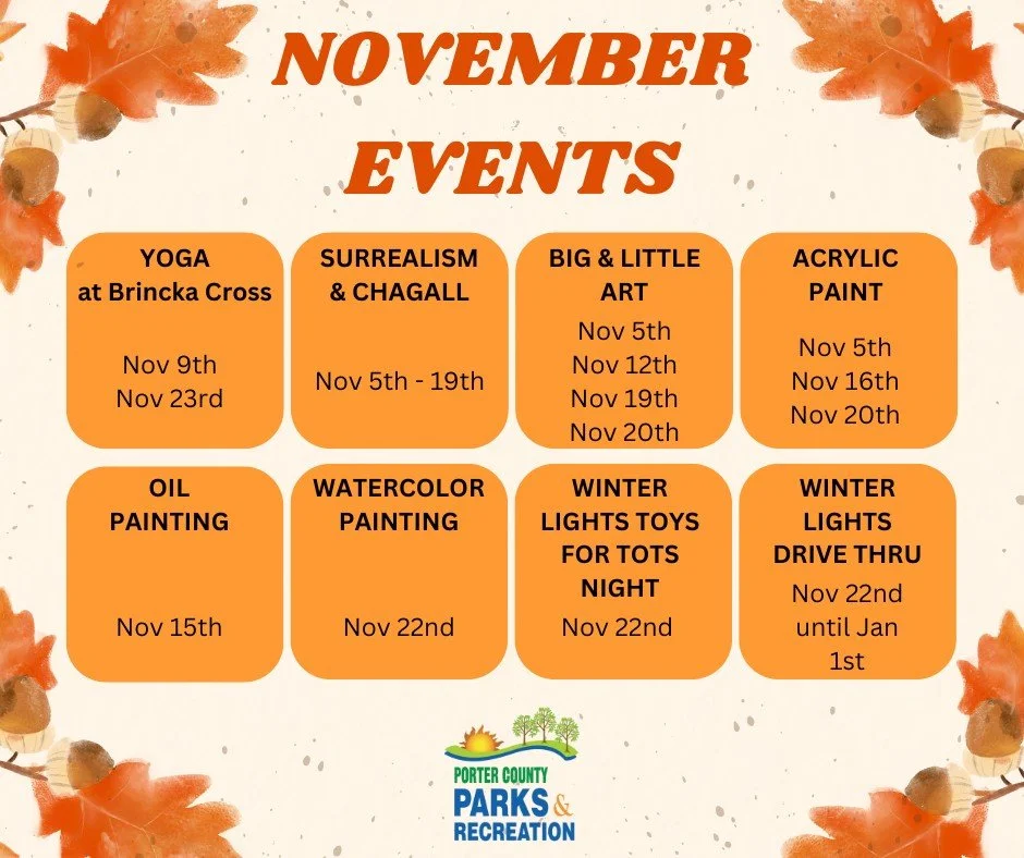 Welcome! Porter County Parks and Recreation maintains four parks located in Porter County, Indiana. We strive to provide our neighbors with quality park spaces, meaningful programs, and memorable events. Whether you come for a hike, a program, summer camp, or a festival, we hope you enjoy your time. See you at the parks!